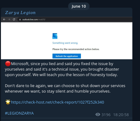 Its as if Zarya Legion really wanted to make Microsoft suffer, for no really obvious geopolitical reasons. Yes, Microsoft has been a strong supporter of Ukraine, but nothing recent was announced around the time of the attack.