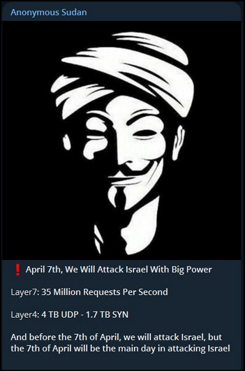 On April 7 Anonymous Sudan brags about the capability they can leverage against Israel - this comes after the March 21 Zarya Legion announcement that they would help Anonymous Sudan.