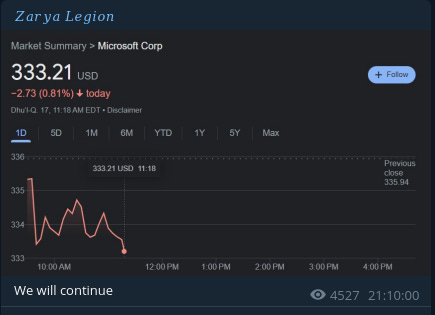 Another thing that Zarya Legion posted was the impact of the attacks to Microsoft’s share price, again highlighting this had more a revenge vibe about it.