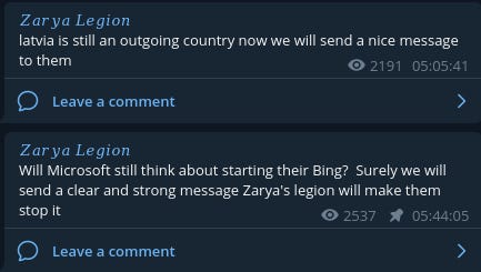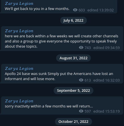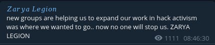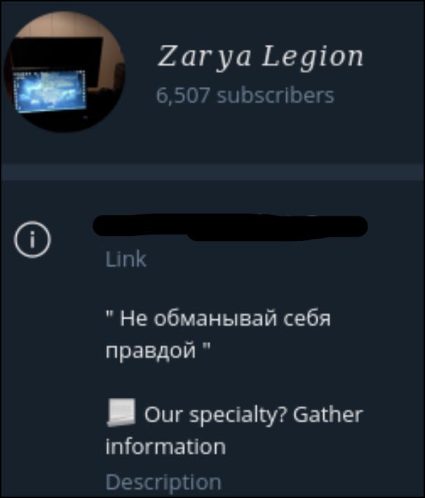 Zarya Legion has also placed more privacy controls on their telegram page, blocking screenshots - they appear to only be communicating with their followers instead of looking for attention from the West like other groups.