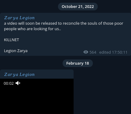 Zarya was one of the original special forces groups of Killnet back in March 2022 and is arguably the most capable of any Killnet group, conducting a series of alleged breach and leak attacks against Ukraine. The group has also conducted multiple interviews with Russian media and welcomed Western attention. They sought attention and notoriety like all Killnet collective members. Which is a key point of difference between the notably ‘shy’ Zarya Legion and the overt Zarya.