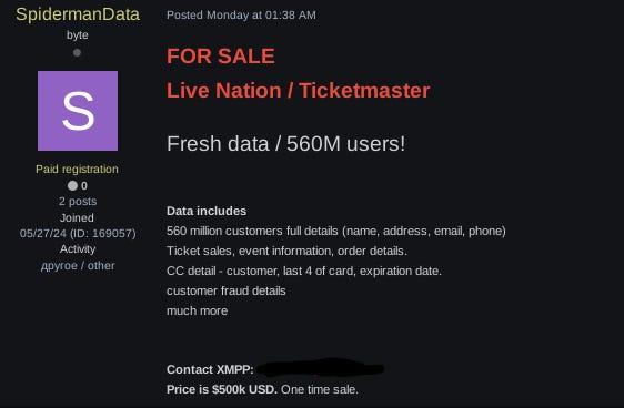 It is difficult to confirm or deny at this stage how legitimate this claim is, while it does look like there is some recent Ticketmaster data exposed it is not clear if the threat actors truly have over 560 million users of data. At this stage I would be cautious as there are some questionable aspects of this claim - keep Alert and not Alarmed. By fanning the flames of this claim you help promote BreachForums.